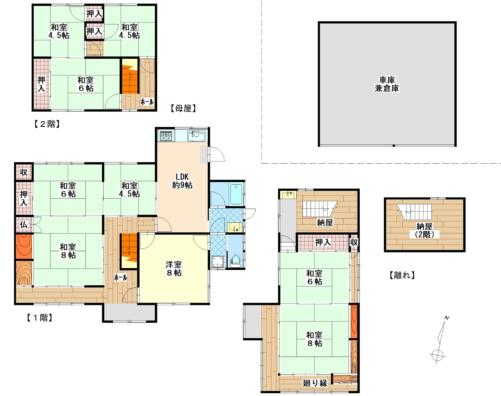多少の経年劣化は否めないものの田畑と里山に囲まれた住環境に優れた日本家屋!昭和の生活を彷彿させるレトロな雰囲気が漂う洋室をはじめ、趣味に没頭できる大きな車庫兼倉庫や意匠を凝らした離れなど盛り沢山!